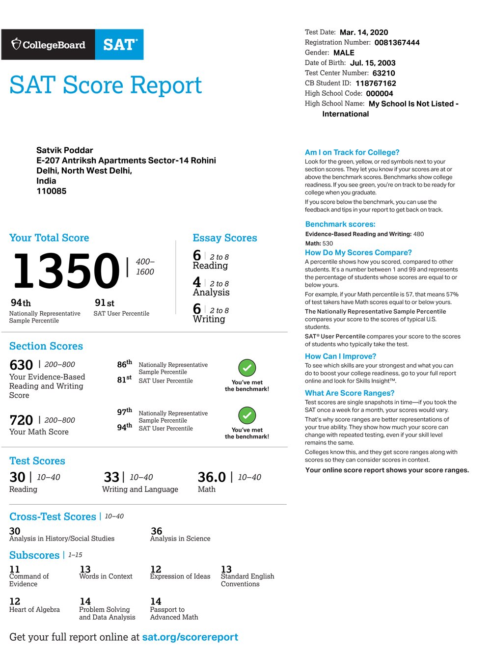 400–1600 (Math + Evidence-Based Reading & Writing)