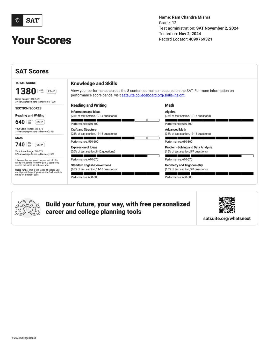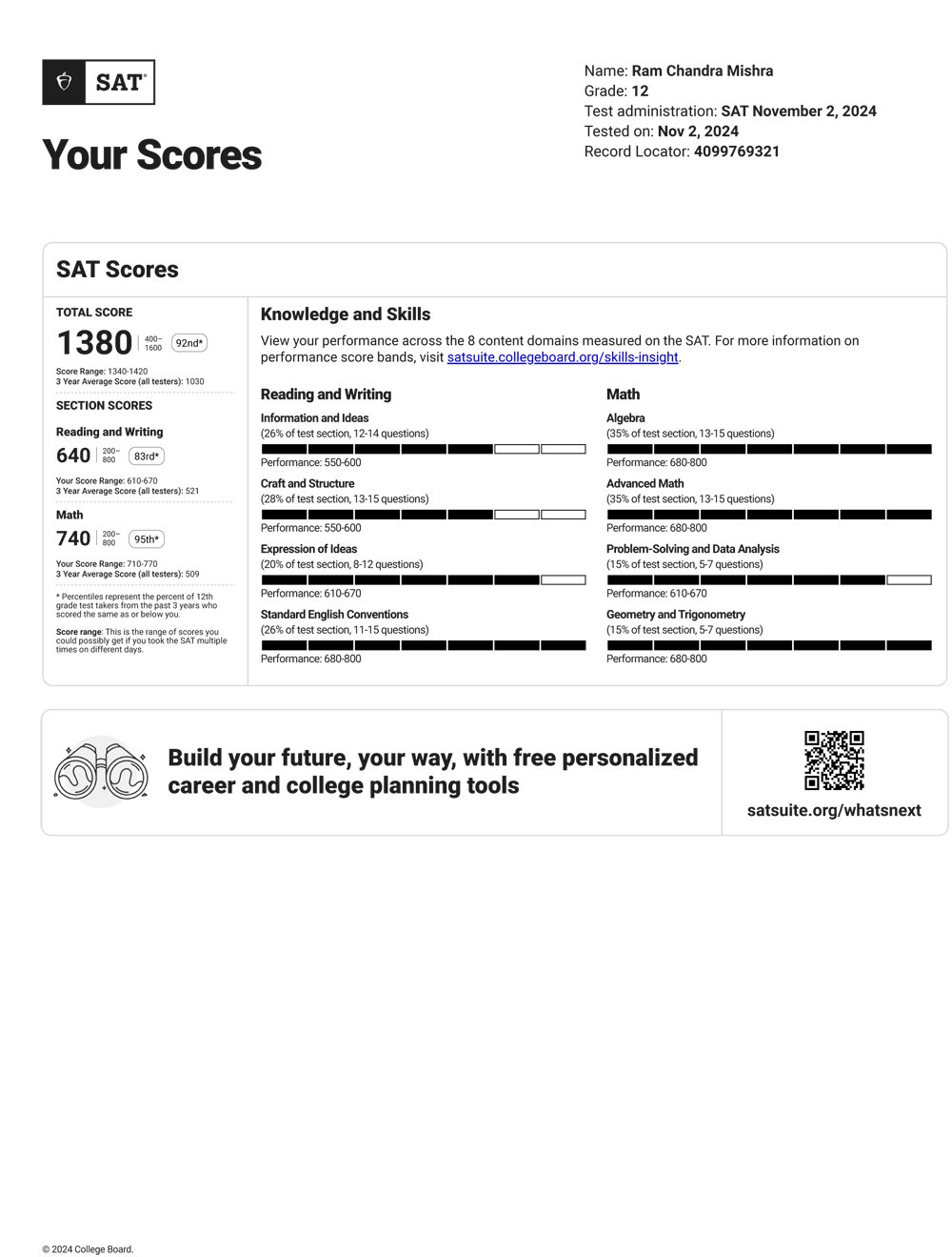 The SAT is designed to measure a student’s academic abilities and readiness for undergraduate studies. Accepted by thousands of universities in the U.S., Canada, Europe, and Asia, the SAT helps institutions evaluate applicants consistently and fairly. It also assists students in qualifying for merit-based scholarships and honors programs. With increasing global acceptance, the SAT opens doors for international students seeking undergraduate admissions at reputed institutions worldwide.